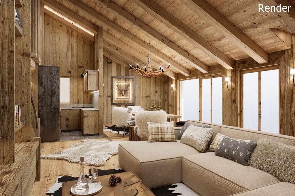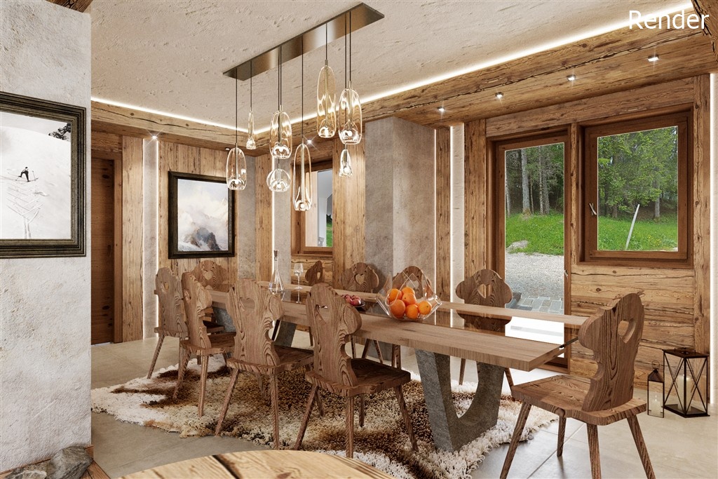 La proprietà, immersa nella tranquillità e nel verde, è stata recentemente ristrutturata ed è composta da soggiorno – pranzo, con vista su Tofane e Pomagagnon, cucina e quattro camere matrimoniali con bagno en-suite.